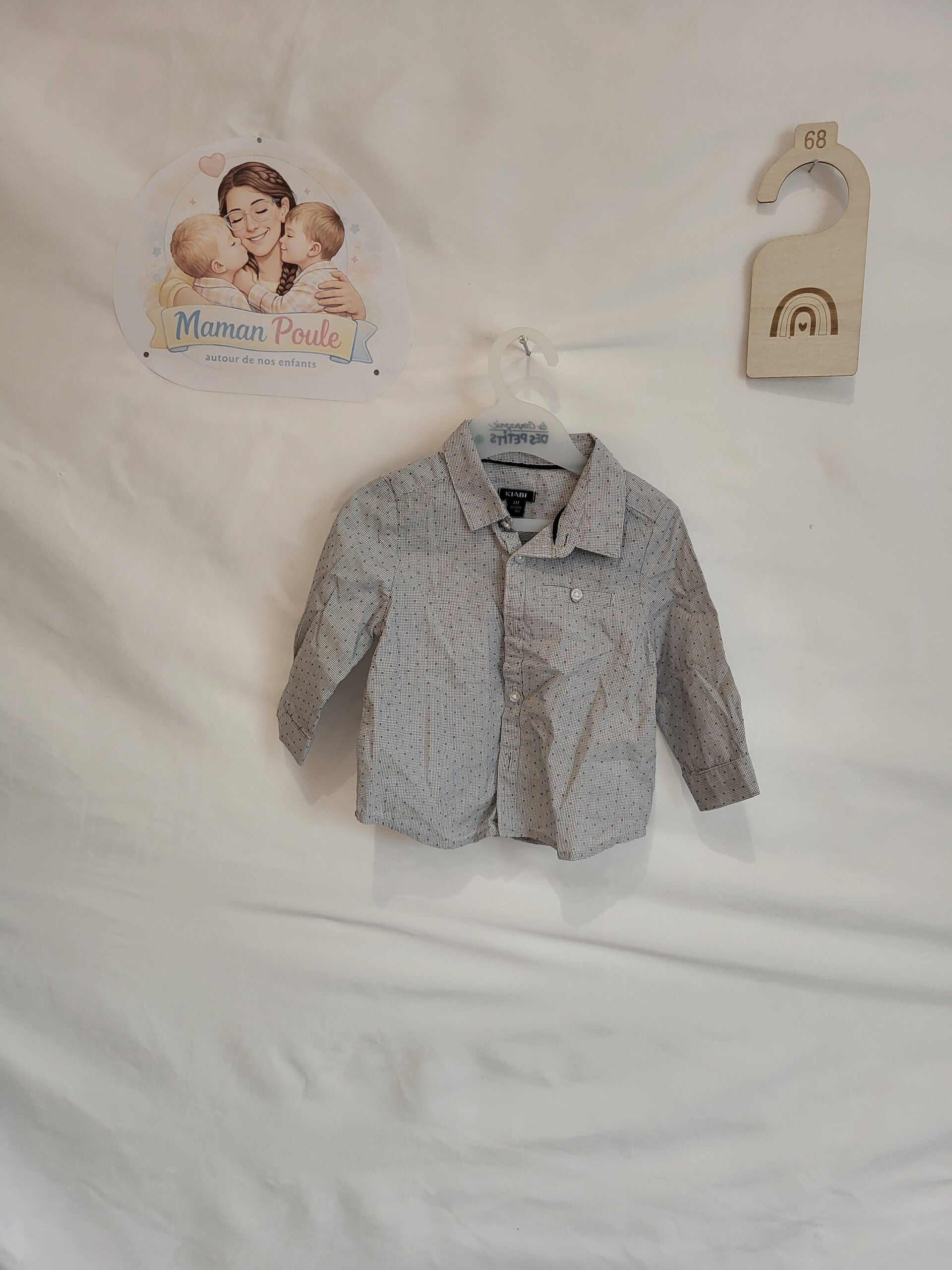 Chemise lignée gris clair à pois T68 Kiabi